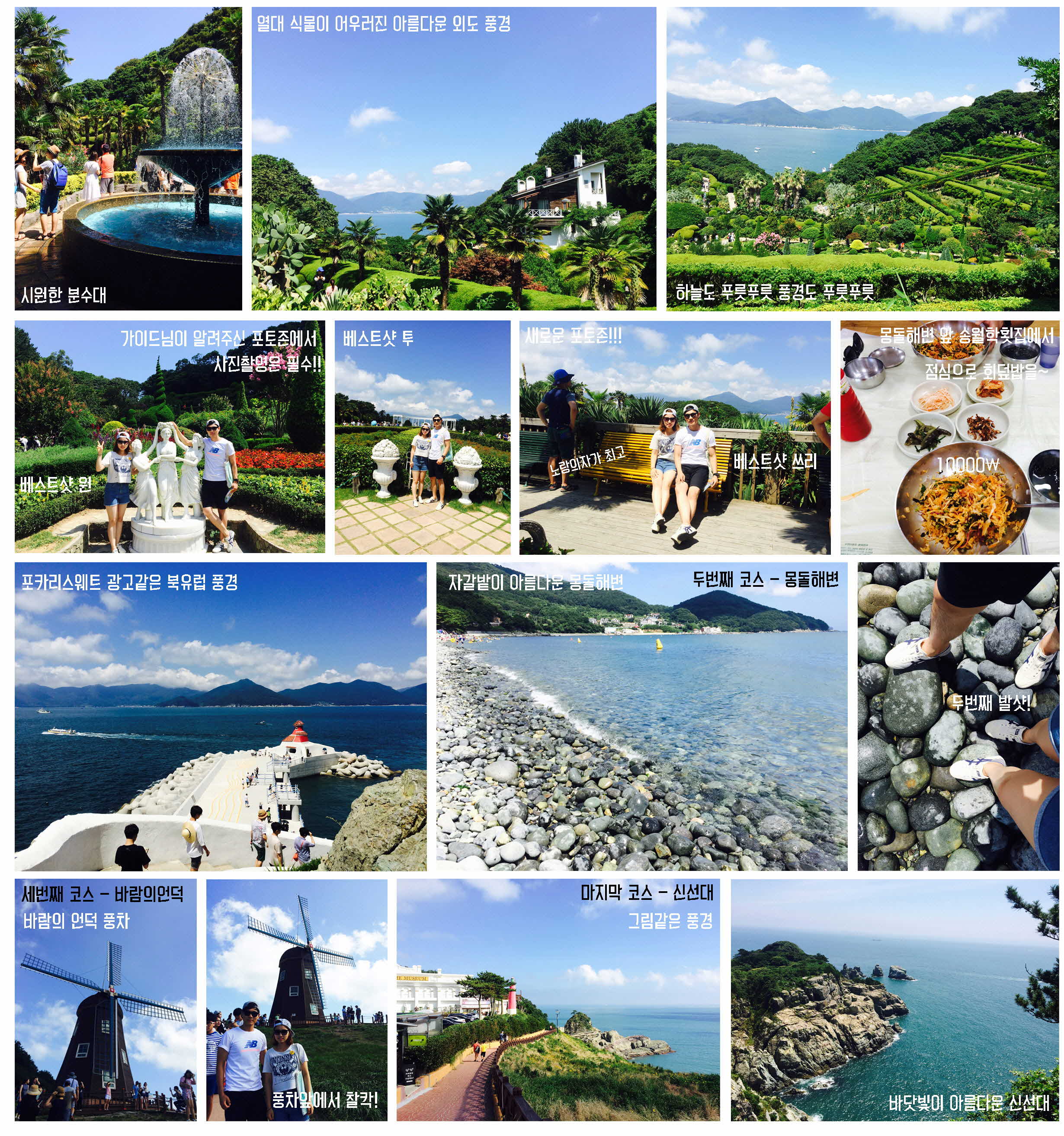 엄청 찌는 더위에 온몸에 땀이 줄줄 났지만... 풍경은 정말 아름다웠다는! 육지에만 살다가 바다를 보니 어찌나 좋던지ㅜ 푸른 열대식물들로 아름답게 꾸며진 외도는 정말 기억에 남을 여행지입니다ㅎㅎ 가이드님께서 추천해주신 포토존을 찾아 남자친구와 예쁜 사진도 많이 찍어 좋은 추억을 많이 남겼습니다ㅎㅎ