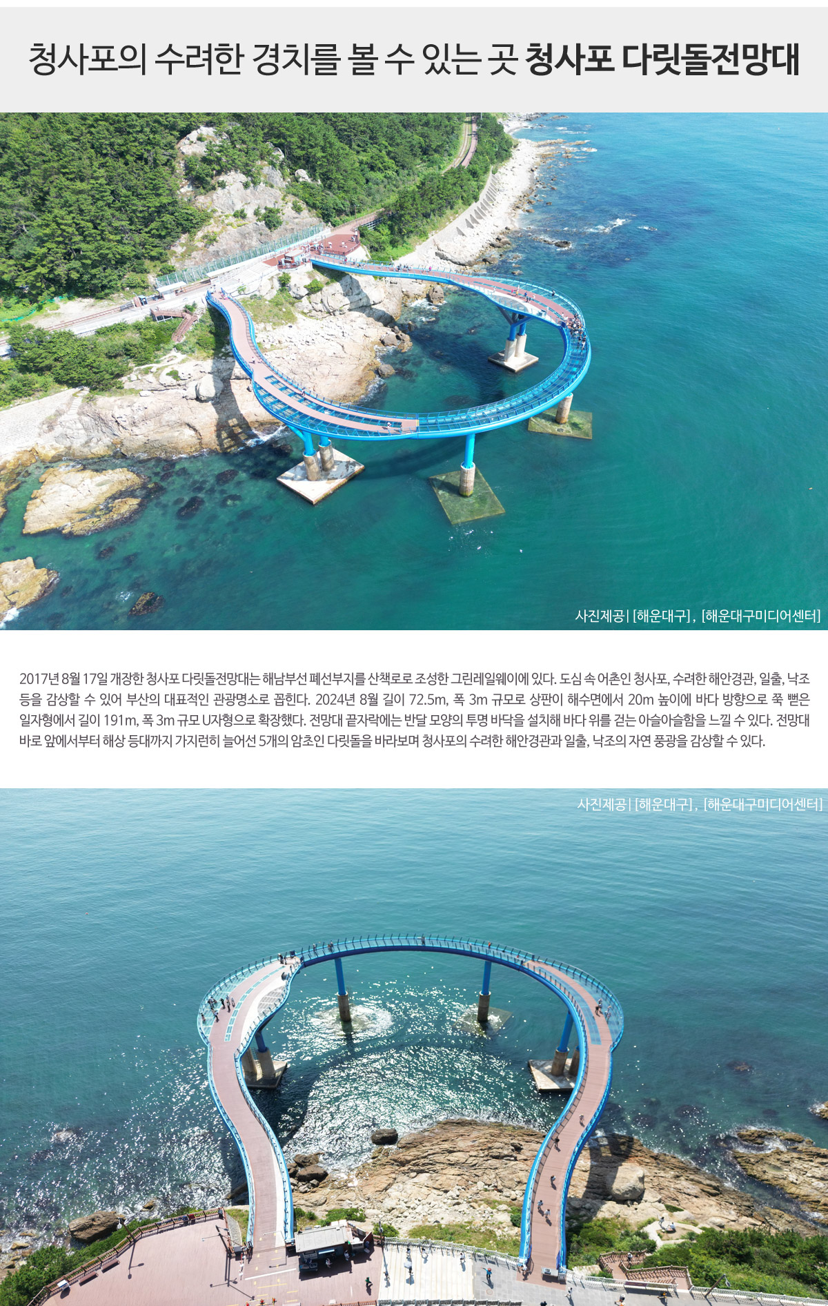2.미포정거장 하차후 송정정거장까지는 ★도보 이동★ 하시면서 다릿돌전망대, 해월전망대등 관광지를 둘러보시는 코스